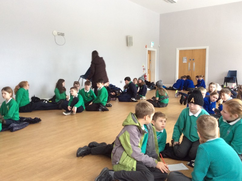 Rang 7 pupils from the County Down Gaelscoileanna came together this week to take part in a big quiz at the community centre here in Castlewellan. It was a really lovely event with pupils from Gaelscoil na mBeann, Bunscoil Mhuire and Phádraig, Bunscoil an Iúir and Bunscoil Bheanna Boirche.